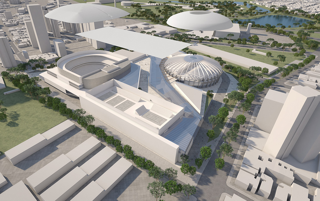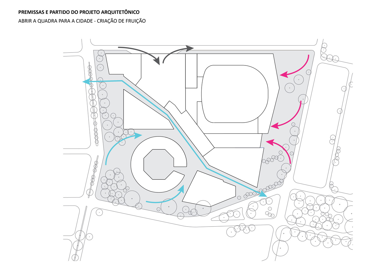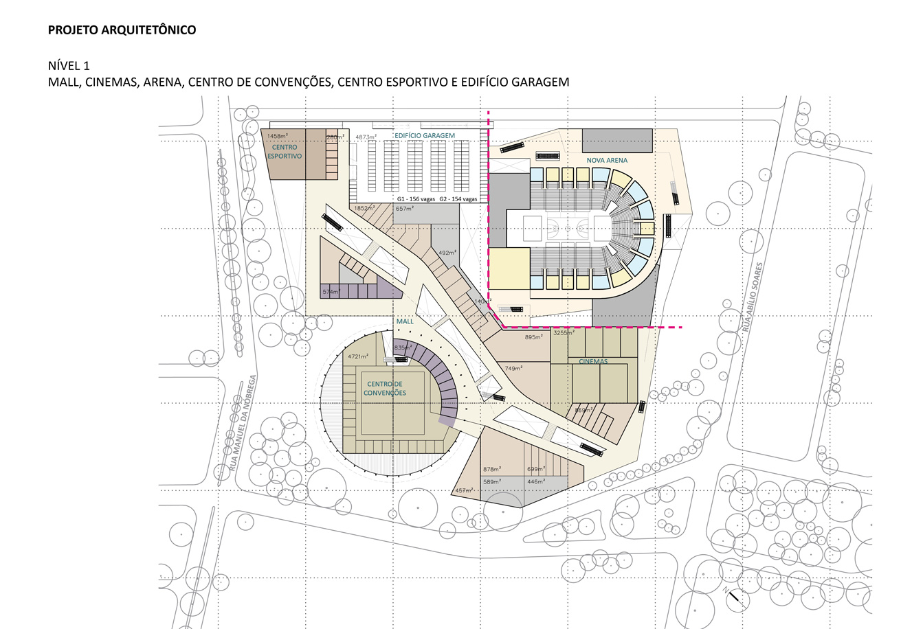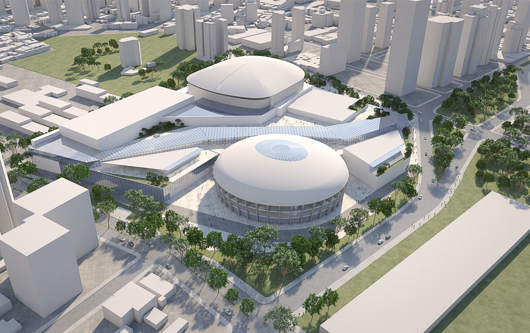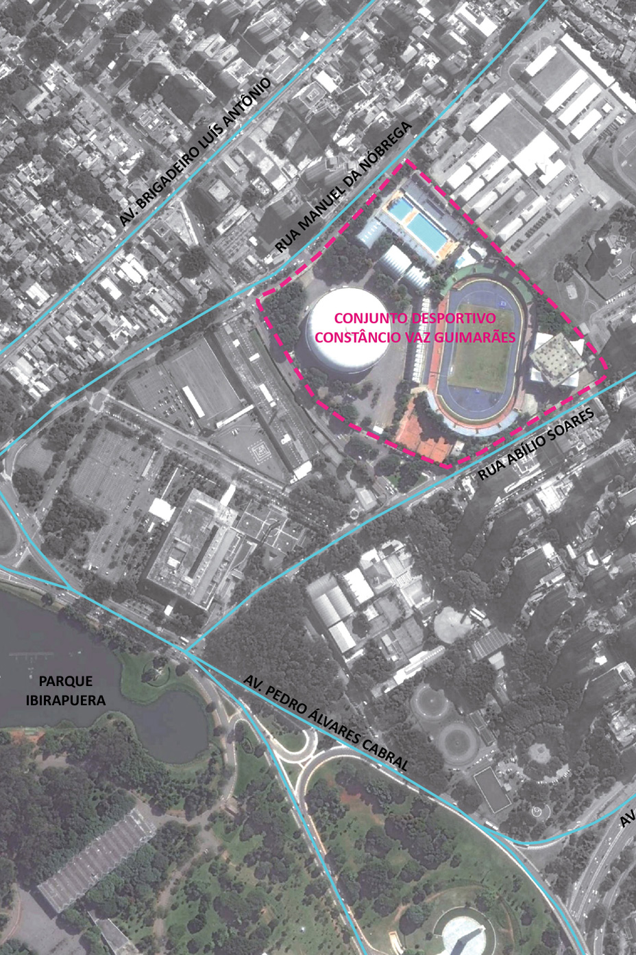 Considerado um marco na paisagem paulistana, o Conjunto Desportivo Constâncio Vaz Guimarães é composto por equipamentos dedicados à prática de vários esportes, como natação, futebol, ginástica e artes marciais, além de ter uma localização privilegiada e com fácil acesso, a cerca de 500 metros do Parque Ibirapuera. Apesar disso, o espaço é usado somente em eventos pontuais, sendo subaproveitado na maior parte do tempo. Em 2017, este contexto levou a um movimento em direção à privatização com o objetivo de transformar os equipamentos esportivos e criar possibilidades comerciais para, dessa forma, requalificar o complexo com um projeto criado pelo aflalo/gasperini arquitetos, em parceria com o escritório Coutinho, Diegues e Cordeiro Arquitetos. A proposta vai além da modernização e foca também na transformação urbana que essa iniciativa permitiria, com a retirada dos atuais gradis e criação de praças públicas, promovendo maior integração com a cidade. Entre as novidades, está prevista a renovação do Ginásio Geraldo José de Almeida — mais conhecido como Ginásio do Ibirapuera —, a construção de uma nova arena para 20.000 pessoas, o incentivo à prática de esportes por meio de um novo e atualizado centro esportivo e a incorporação de novos usos, como mall e convenções. O arquiteto José Luiz Lemos da Silva Neto, que coordenou o projeto, explica que o partido é preservar a memória e sugerir transformações para o futuro, preservando a identidade de São Paulo. No térreo, onde existe maior fluxo de pessoas, ficaria uma parte do novo mall, restaurantes e academia. Já os andares superiores receberiam um complemento do mall, cinemas, área de convenções e acesso à nova arena. Respeitando a importância arquitetônica do Ginásio do Ibirapuera, a proposta de alteração de uso contaria com uma estrutura independente da existente, garantindo que não haveria nenhuma implicação à configuração original das arquibancadas e que o espaço pudesse ser revertido a sua função inicial a qualquer momento. Quanto à nova arena, a ideia é criar um novo polo gerador de negócios de entretenimento, esporte e lazer em São Paulo. De médio a grande porte, o equipamento teria capacidades variando em relação aos usos. Essa flexibilidade de configurações proporcionaria diversos tipos de atividades de esportes, shows e eventos, principalmente devido aos assentos retráteis e removíveis, promovendo espaços variados. Além disso, a possibilidade de conexão da área principal interna ao centro de congressos e convenções, anexo ao complexo, permitiria o uso separadamente ou em conjunto.